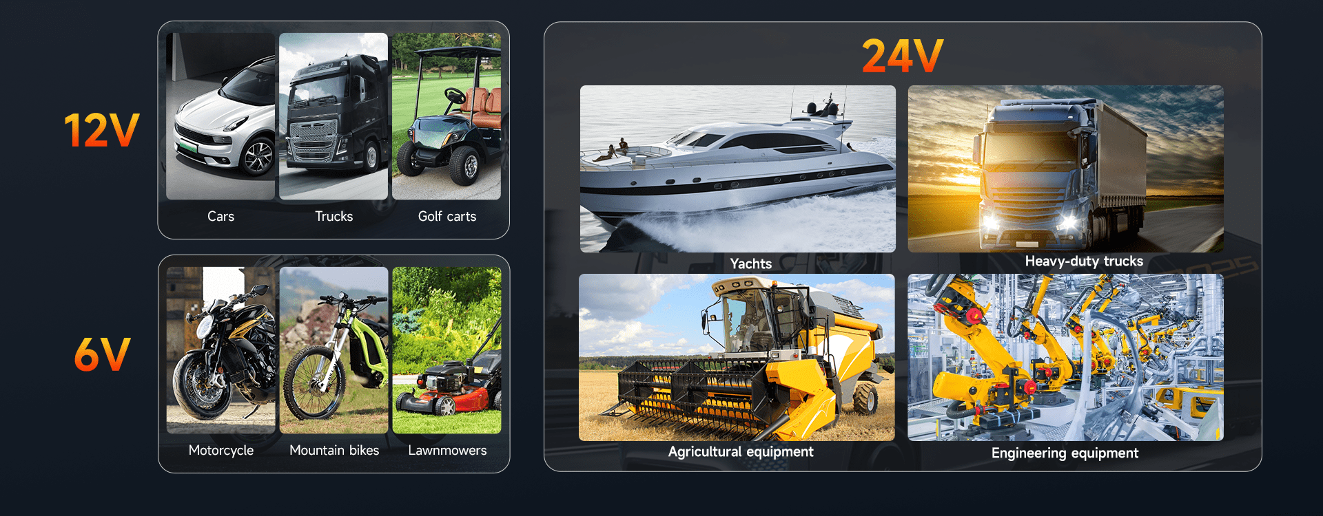 Applicable for 12V battery system and 12V& 24V starting and charging system