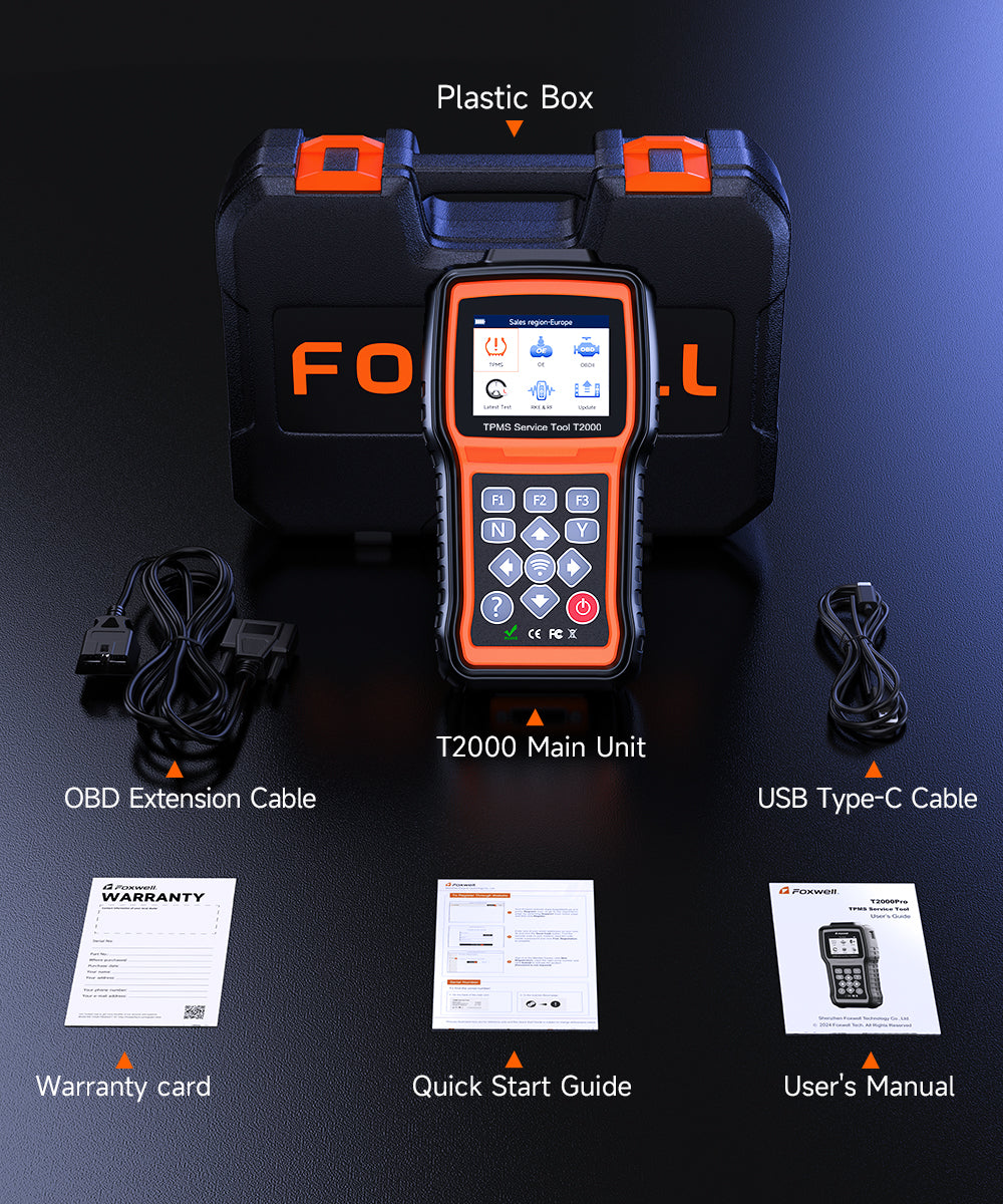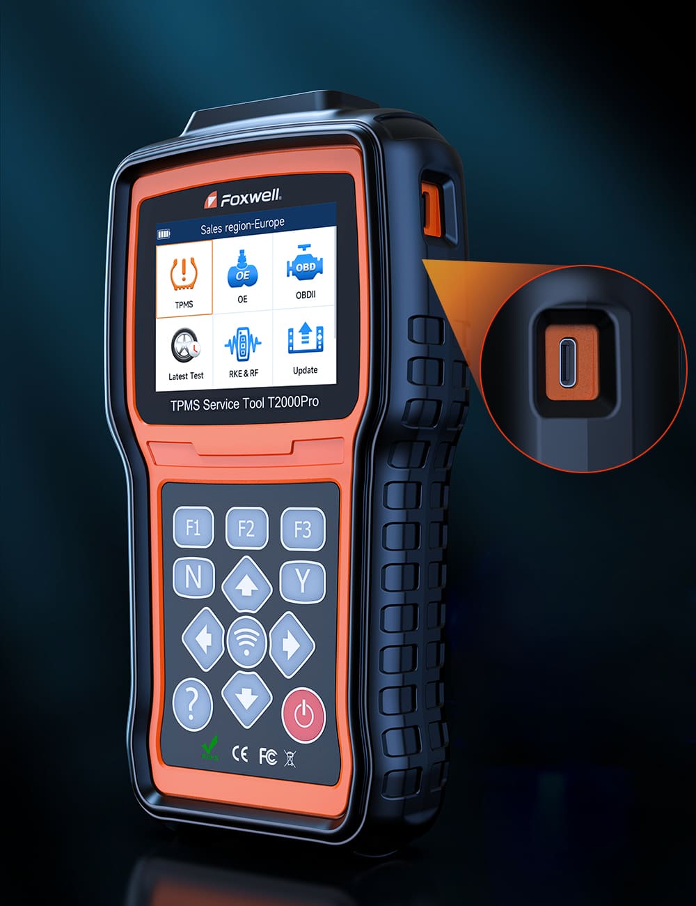 T2000 Pro integrates OBDll module and is designed to offer complete diagnostic for TPMS system, including read/clear codes, display live data in text and graph and service function etc.. to help technicians complete multiple projects quickly with one tool. Such as Read Sensor ID from the Vehicle ECU, Write Sensor ID into the Vehicle ECU, Read/Record/Playback TPMS Live Data, Read/Clear Code of TPMS System, and Reset Malfunction Indicator Light, Read Activated Sensor Data, etc.