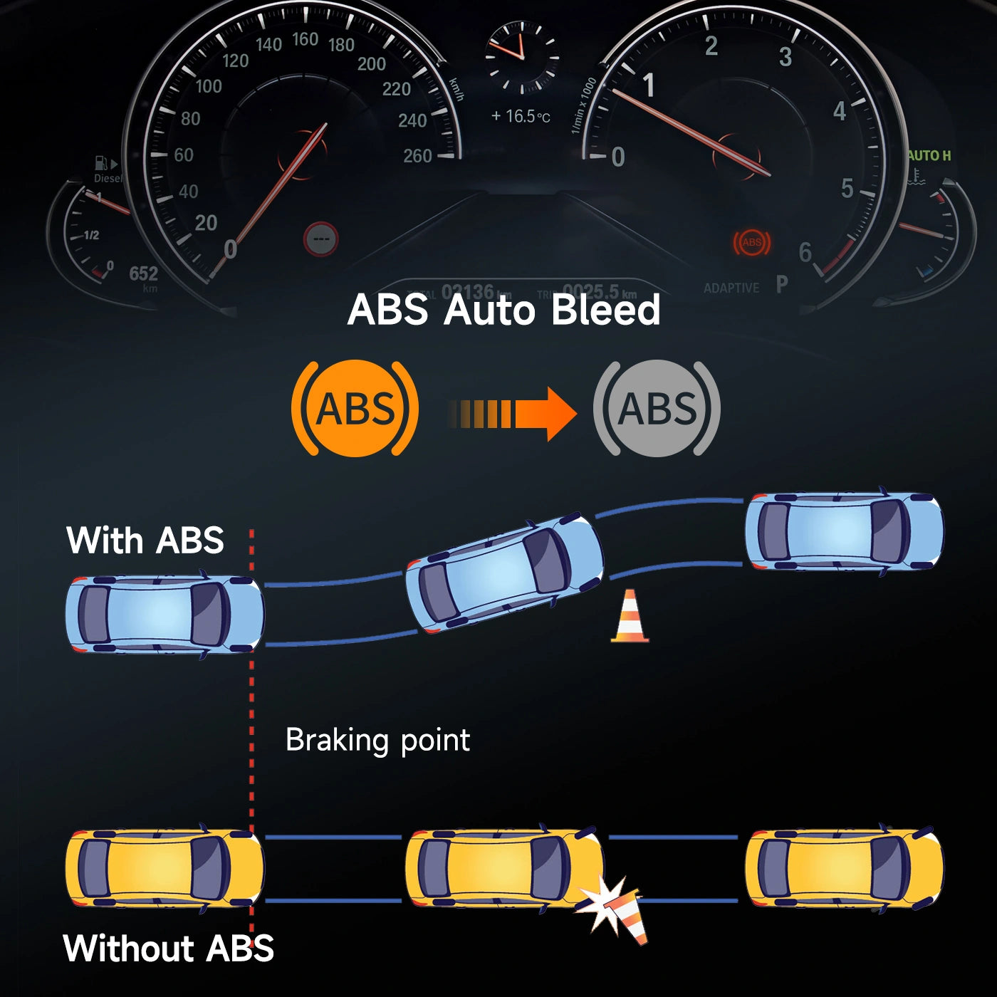 The Bi-directional control features can be extremely valuable when diagnosing ABS and SRS, helping car owners quickly identify and resolve common issues quickly. When an ABS warning light illuminates or braking feels unresponsive, this tool can activate its pump, calibrate wheel speed sensors, or bleed brake system bleeding to restore proper braking performance. This feature simplifies repairs while saving both repair time and money!
