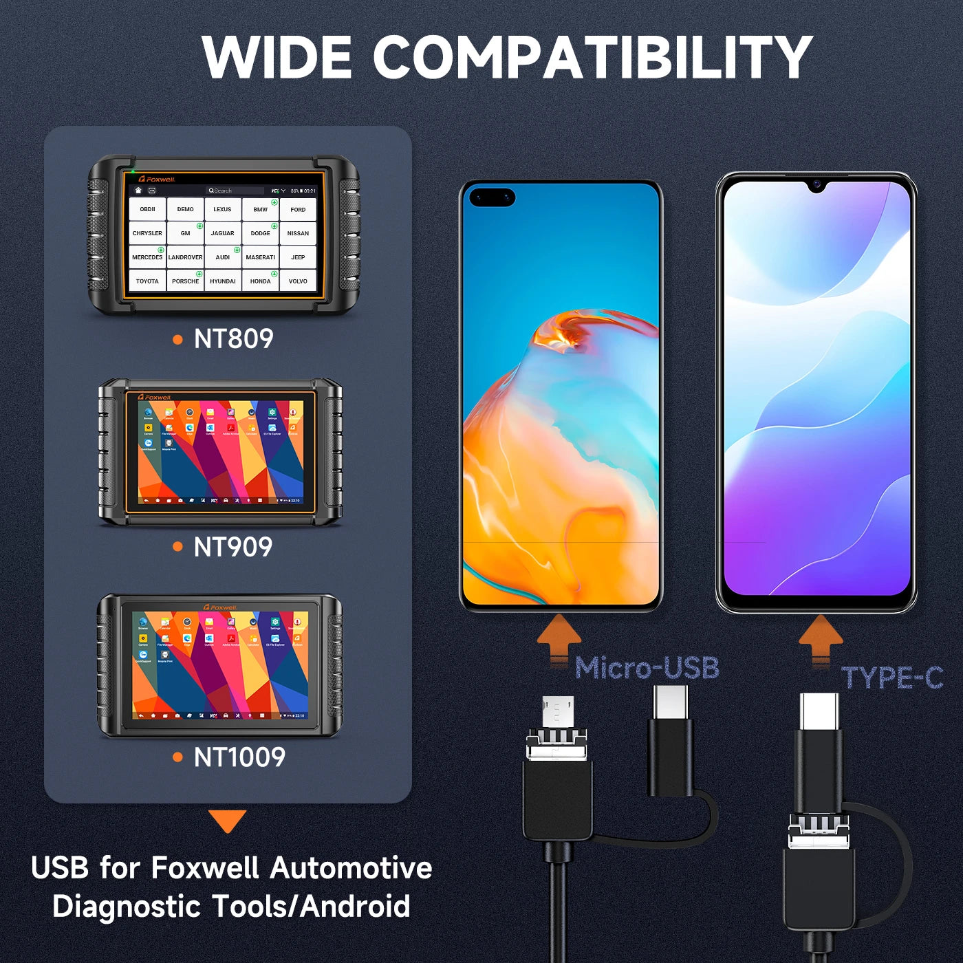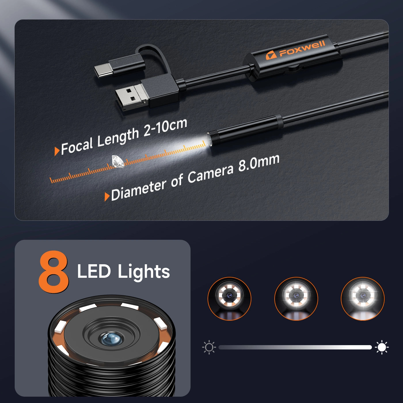 Automotive Endoscope 3-in-1 USB Type-C Android, 1920*1080P fit for Foxwell NT809, NT809BT, NT809TS, NT909, NT1009, Android Phone, PC