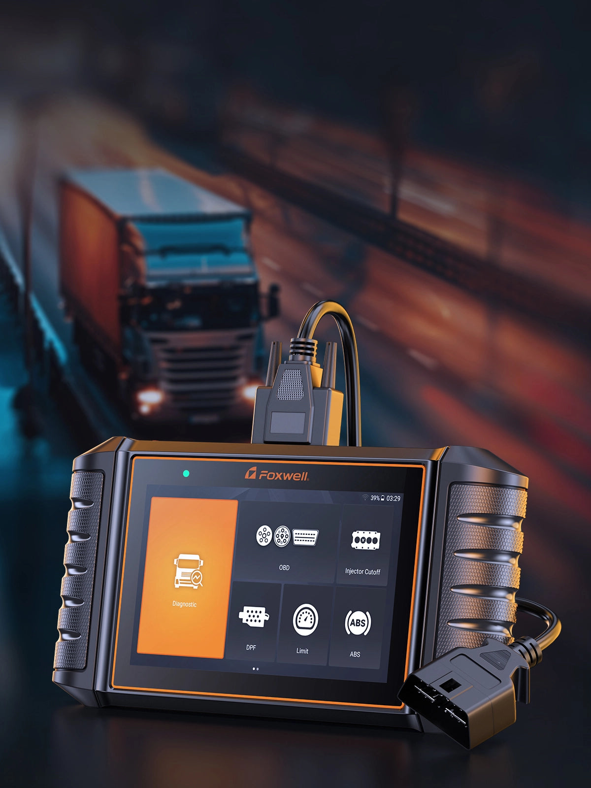FOXWELL's HD500 heavy-duty diagnostic scanner was specifically developed for global markets. It provides comprehensive diagnosis solutions for trucks and buses from major brands like CUMMINS, CAT, DETROIT, PACCAR, INTERNATIONAL HINO and others - supporting engines, ABS, SRS, EPB Park Brake Controller, DPF filters as well as all essential OBD/EOBD/OBD2 service modes like reading/erasing codes/live data collection providing efficient vehicle diagnosis.
