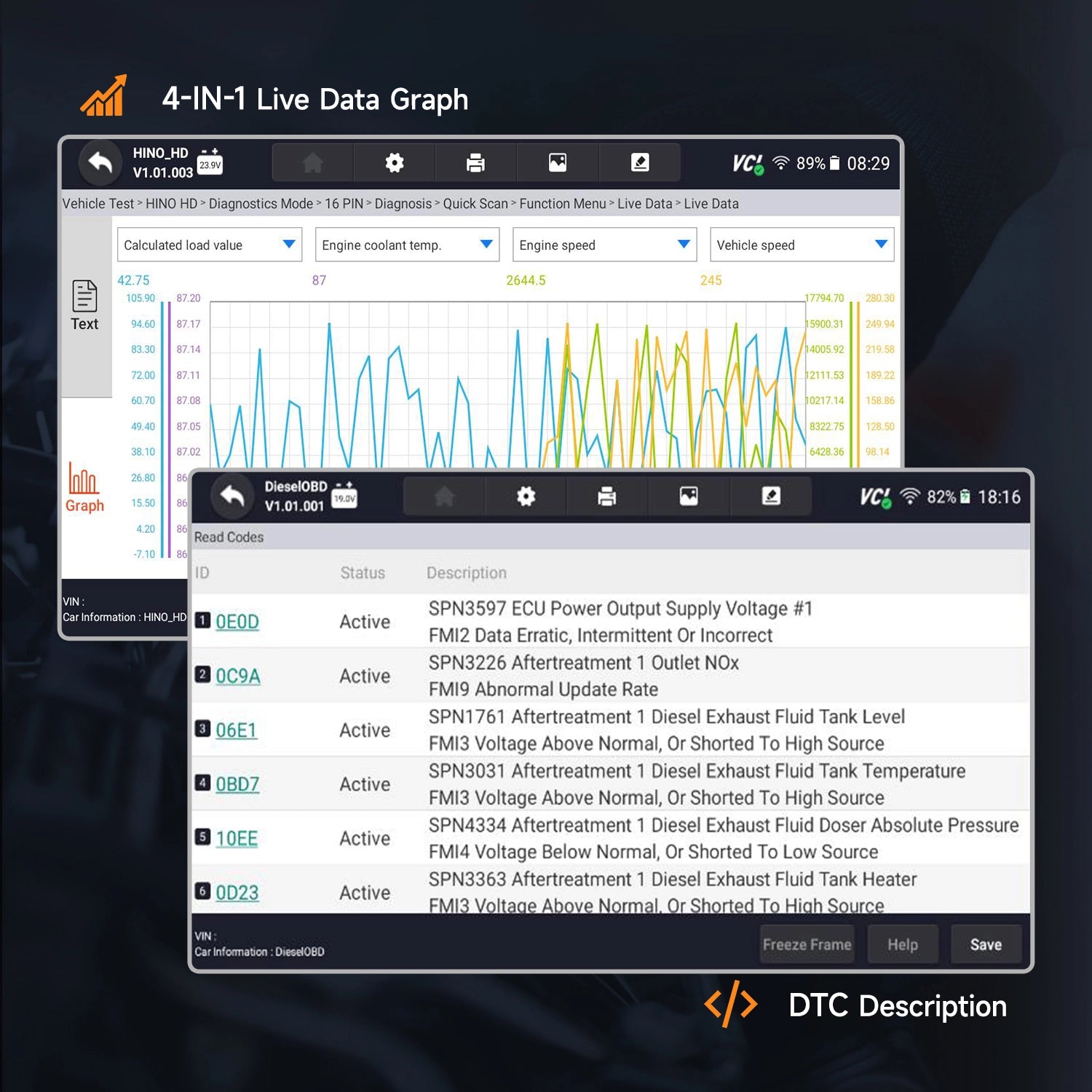 4-In-1 Live Data Graph & DTC Description