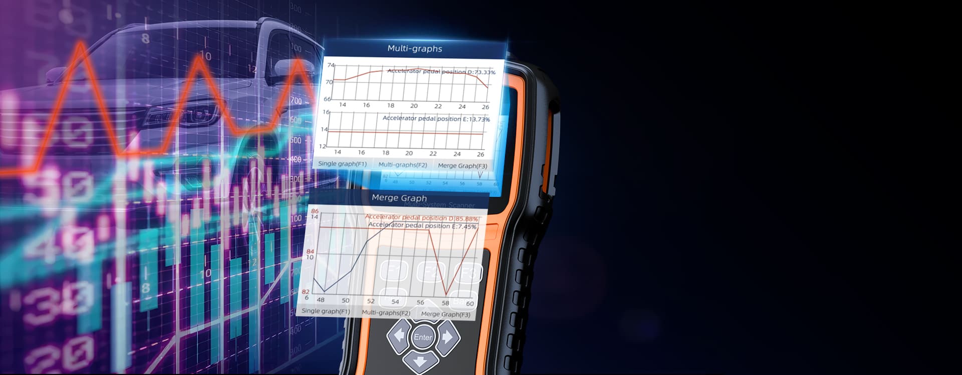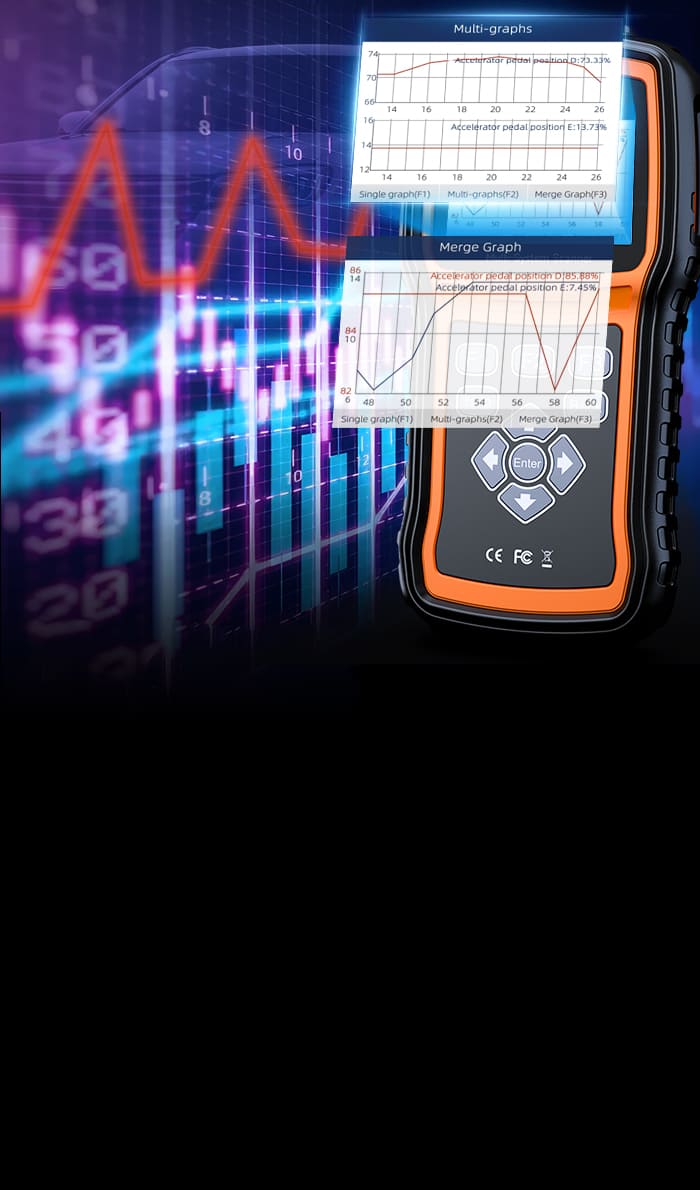 Show live vehicle sensors data in text and graph formats and allows you to focus on any suspicious or symptom-specific data parameters. It records live sensor data and palybacks records to capture intermittent faults whenever they happen.
