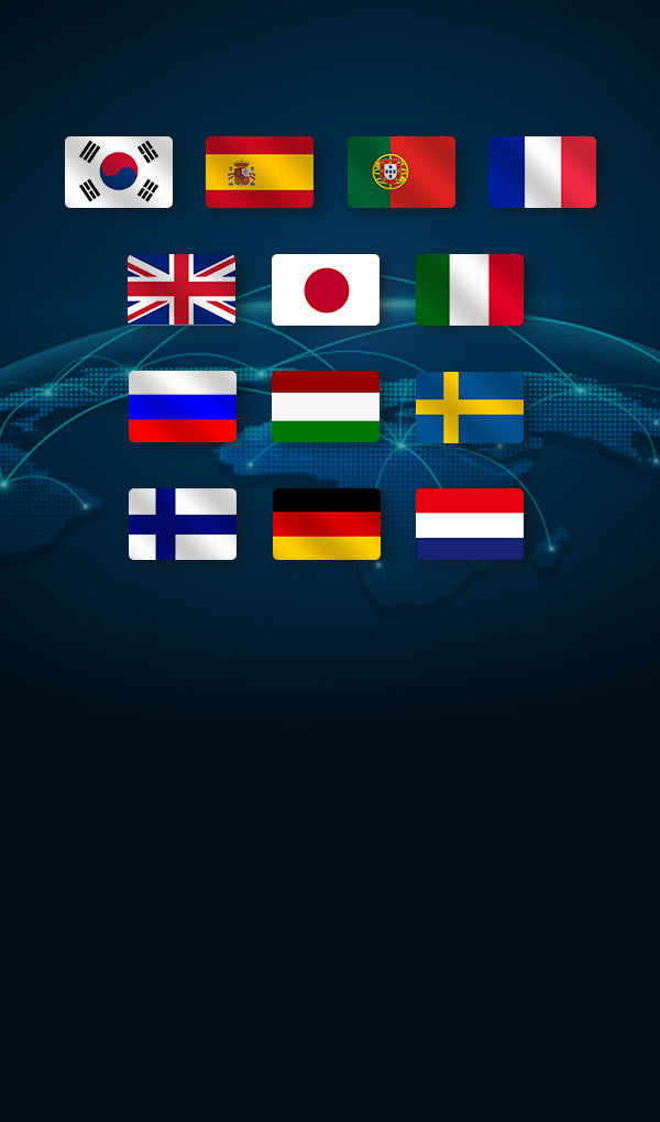 Korea, Spanish, Portuguese,French,Swedish,English,Japanese,Italian,German,Russian,Hungarian,Greek,Dutch...